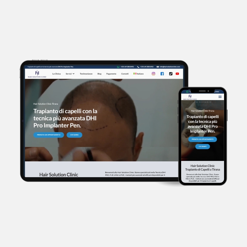 • Creazione del Sito Web: Abbiamo progettato e sviluppato da zero un sito web professionale, user-friendly e ottimizzato per la conversione. Il sito è stato costruito per mostrare l’esperienza della clinica, i servizi e le testimonianze dei pazienti, garantendo un’esperienza utente fluida su tutti i dispositivi.
